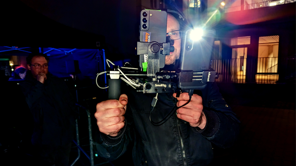 Als Handy kamen neue Samsung-Smartphones mit besonders starken Zoom-Kameras zum Einsatz, teilweise mit zusätzlichem Lichteinsatz auf der Bühne.