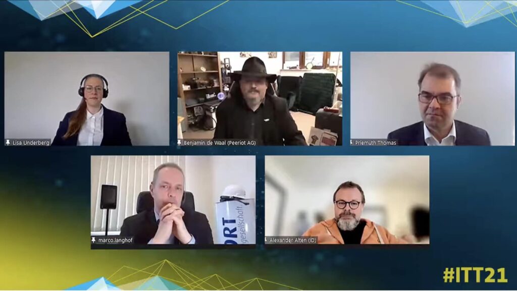 Sogenannte “Bauchbinden” werden für Namenseinblendungen oder “Call-to Actions”-Aufrufe genutzt. Sie werden im unteren Bilddrittel eingeblendet und zeigen Namen und Funktionen von Speaker:innen oder Aufforderungen an die Zuschauer:innen.