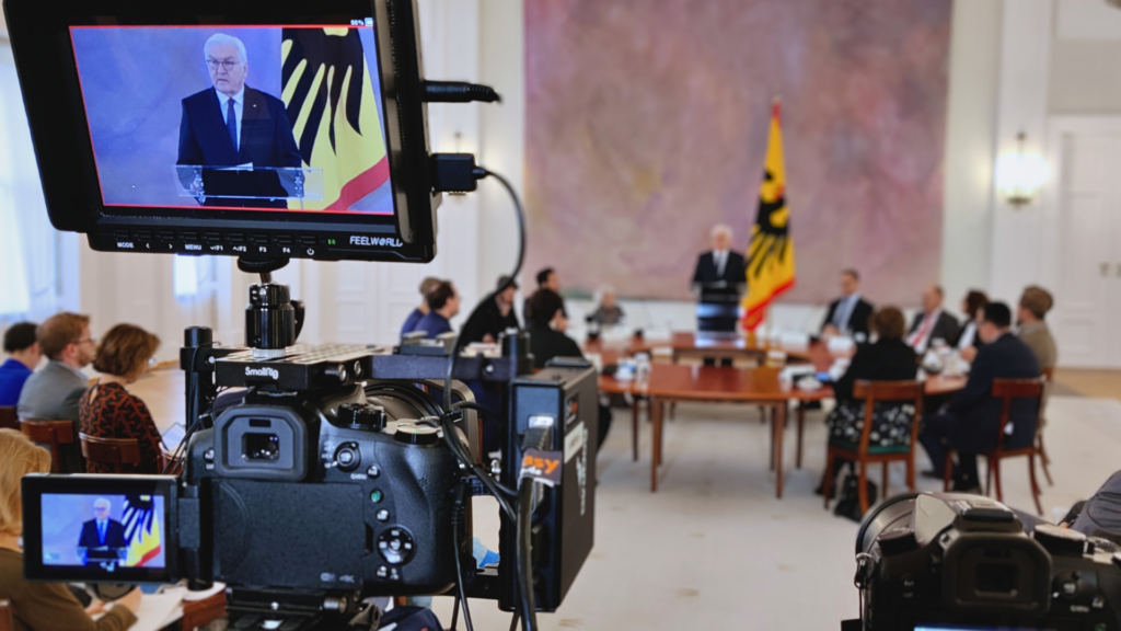Bei mehreren Veranstaltungen haben wir bereits als technischer Dienstleister für das Bundespräsidialamt gearbeitet. Wir haben dabei runde Tische und Empfänge zu den verschiedensten Anlässen und mit hochkarätiger Besetzung betreut.