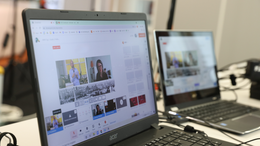 Dynamische Layout-Wechsel: Wir schalten live zwischen verschiedenen Ansichten um – egal ob Einzelsprecher, Panel-Runde oder geteilte Bildschirme. Das wirkt wie aus einem Guss und hält die Dynamik hoch.