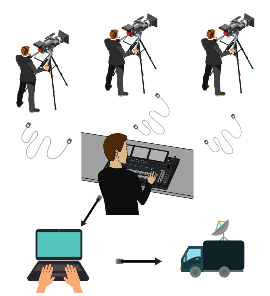 Große TV-Kameras, viele Kabel, große Industrie-Rollkoffer, viel Personal, nicht ohne große Transportfahrzeuge sowie Aufbauzeiten von vielen Stunden.