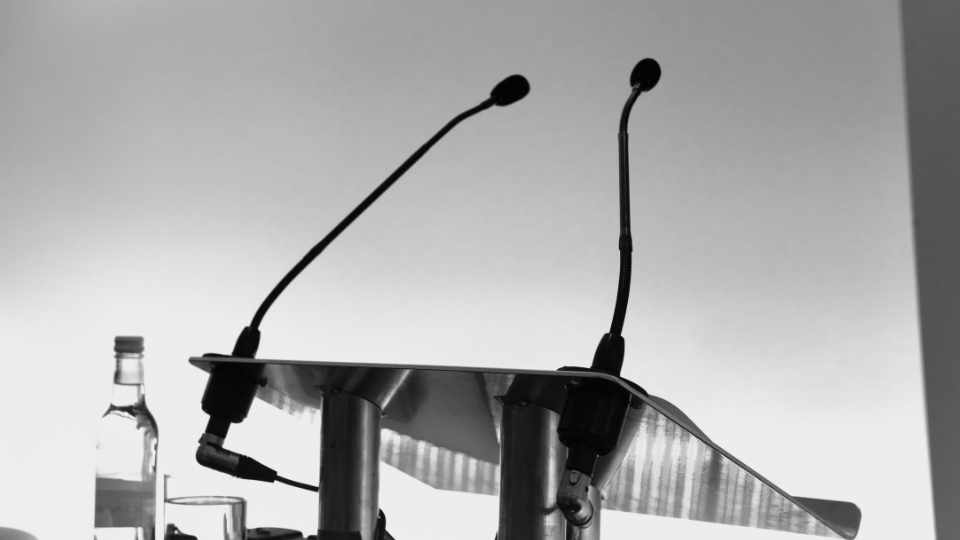 Falls Sie z.B. für eine Podiumsdiskussion sitzen:
