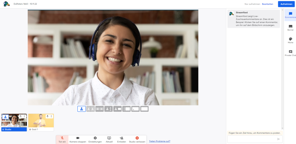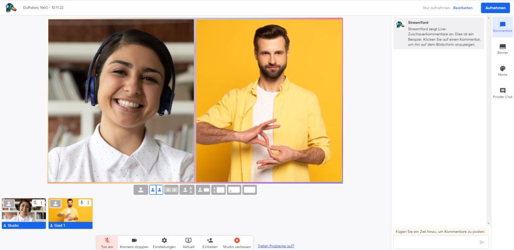 Layouts für virtuelle Events und Zuschaltungen (Streamyard)